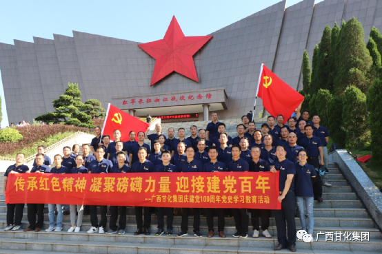 千秋偉業(yè),百年恰是風(fēng)華正茂。為慶祝中國共產(chǎn)黨建黨100周年,深入開展黨史學(xué)習(xí)教育,使黨員學(xué)史明理、學(xué)史增信、學(xué)史崇德、學(xué)史力行,6月17至18日,廣西甘化集團有限公司組織部分黨員同志到桂林開展以“傳承紅色精神 凝聚磅礴力量 迎接建黨百年”為主題的黨史學(xué)習(xí)教育。